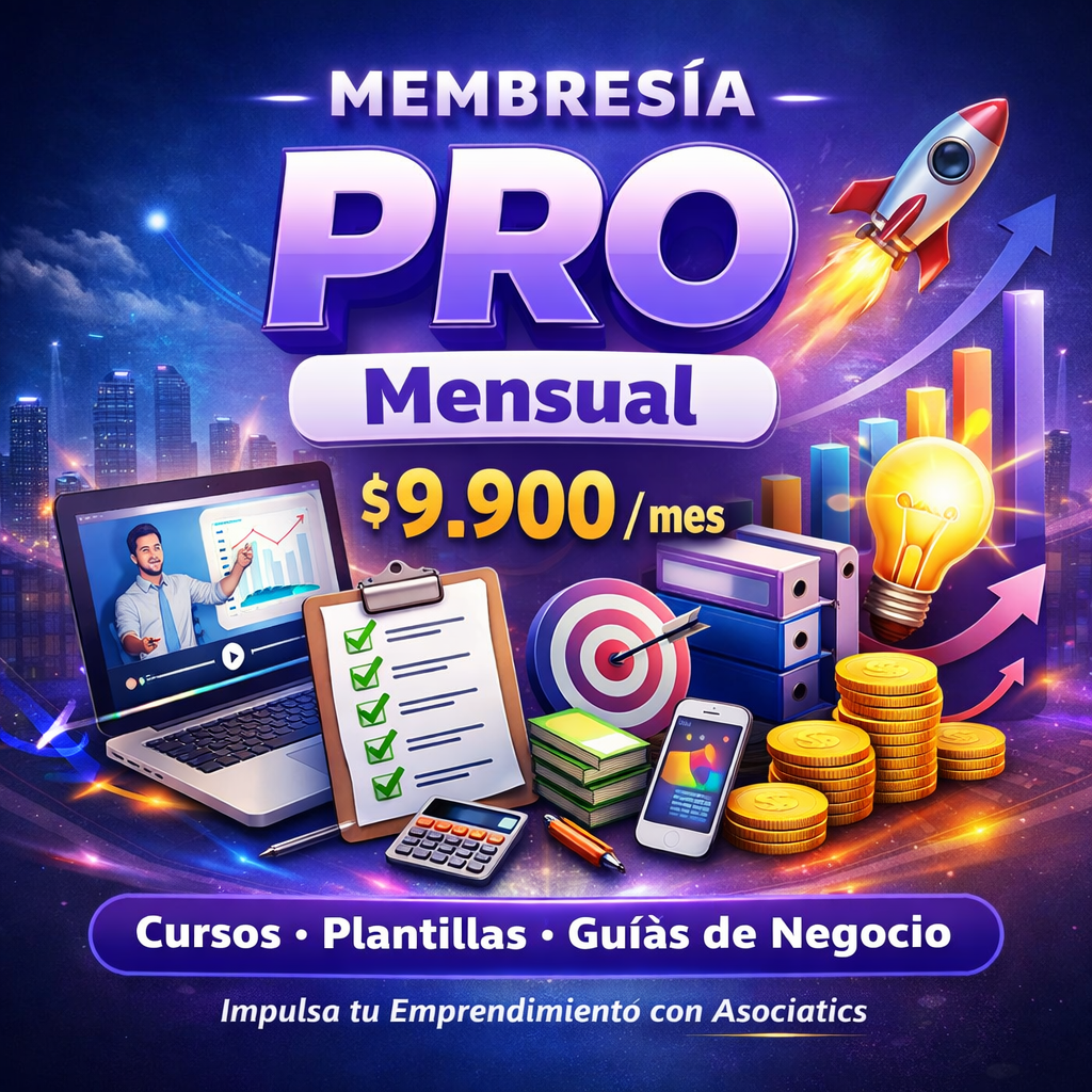 El Plan PRO Mensual de Asociatics está diseñado para emprendedores, profesionales y dueños de negocio que necesitan ordenar, profesionalizar y hacer crecer su proyecto de forma práctica y constante.